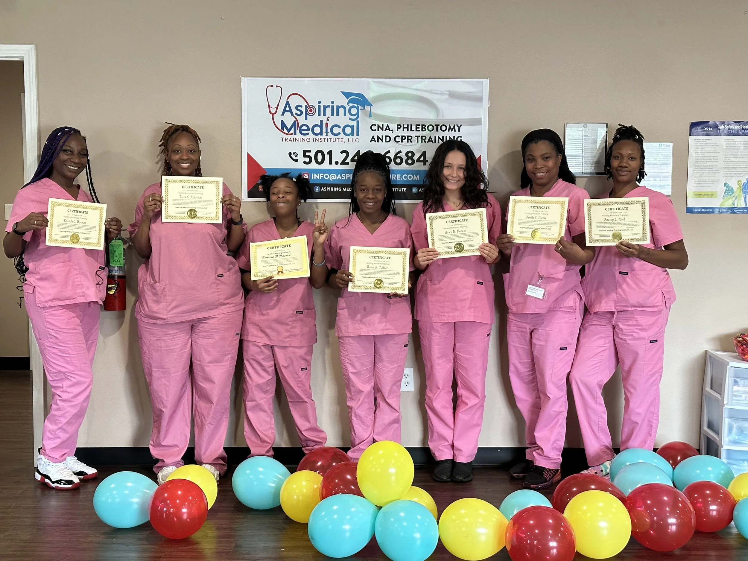 At Aspiring Medical Training Institute, we provide professional 90 hour training course for Nursing Assistants governed by Arkansas Office of Long-Term Care. Our formal classroom instruction, skills lab demonstrations and active clinical participation helps prepare students to pass the skills, and written state exam and become certified. Hybrid will soon be offered to allow the working students to complete the theory lessons online and then schedule skills lab and clinical dates with instructor with an agreed upon time. Day, and Evening classes available. Give us a call today to get started 501)240-6684